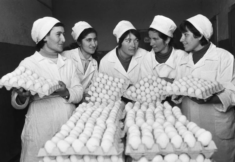 О яйцах в СССР было сложено множество анекдотов, благодаря которым современный читатель может решить, что даже этого продукта в Стране Советов не хватало. А вот и не так! После войны руководство страны сумело построить столько птицефабрик, что по производству яиц СССР переплюнул даже Российскую империю. Это был дешёвый белок, а птицефабрики были очень рентабельны. Даже по приблизительным расчётам, прибыль могла составлять до тысячи процентов.