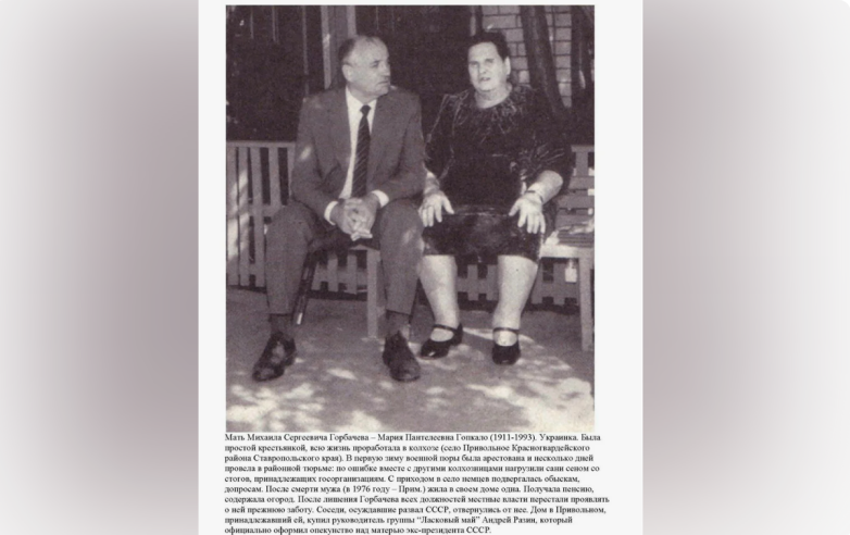 Одиннадцатилетний Миша на тот момент оставался в Привольном со своей матерью Марией Пантелеевной Горбачевой.