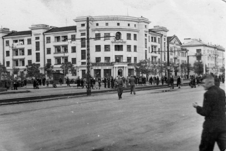 Осинники, Кемеровская область. Старый центр города, ул. Кирова на пересечении с ул. Гагарина, 1950-1960 годы.