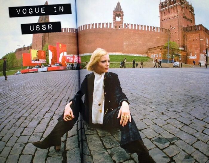 Эффектные слова для обложки “На прахе Сталина” были придуманы еще до поездки фотографов в СССР. Гвоздем программы должна была стать фотография “советской Твигги” непосредственно у Мавзолея.
