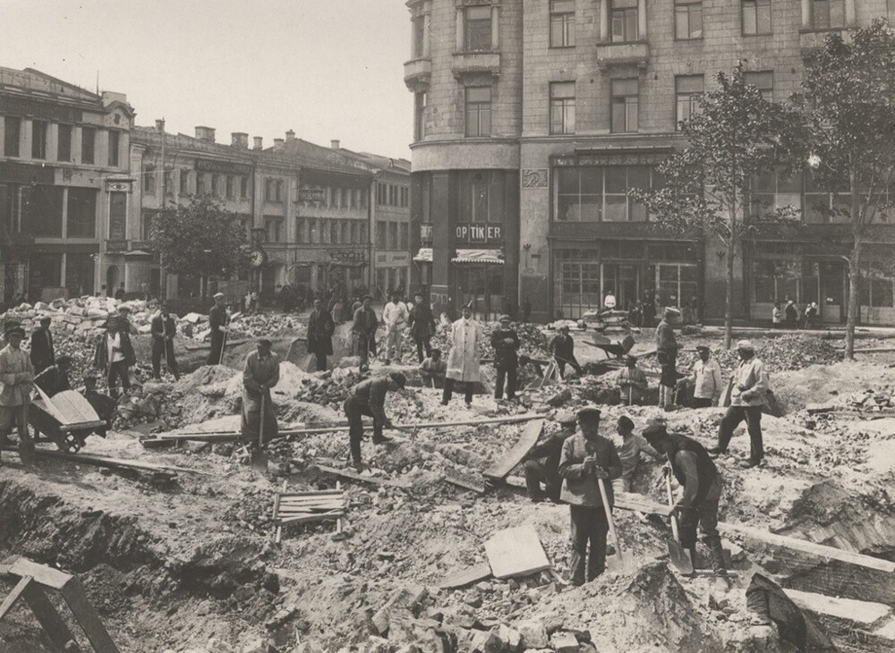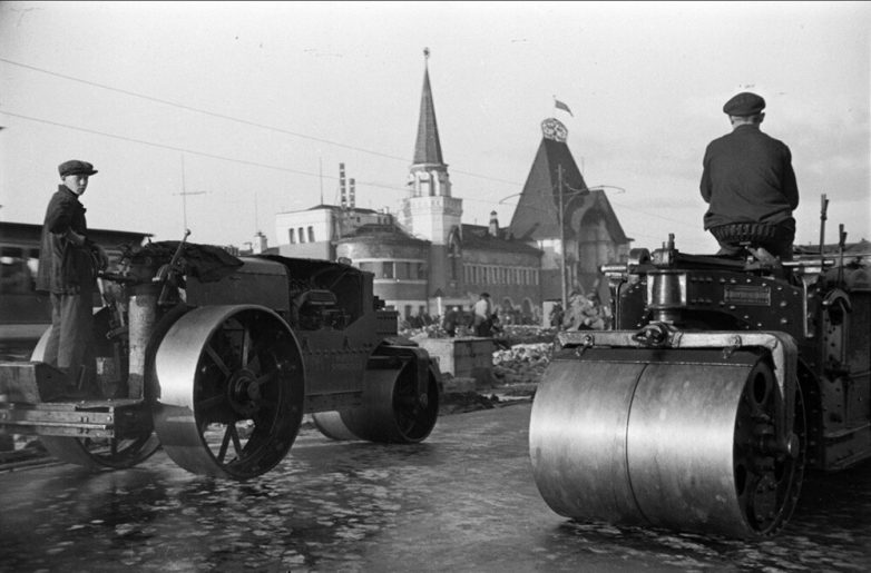 Асфальтировка Комсомольской площади. 1930-е. Автор: Ольга Игнатович.