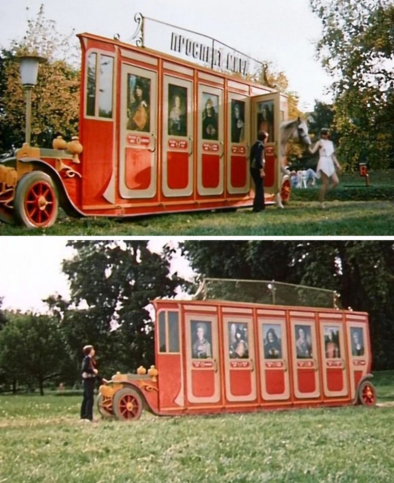В некоторых кадрах мы видим, как на автобусе-телепорте красуется вывеска «Проспект мира», которая периодически куда-то исчезает.