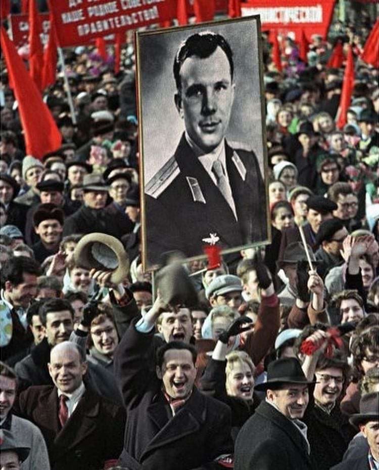Трудящиеся на Красной площади встречают Юрия Гагарина, 14 апреля 1961 года, г. Москва
