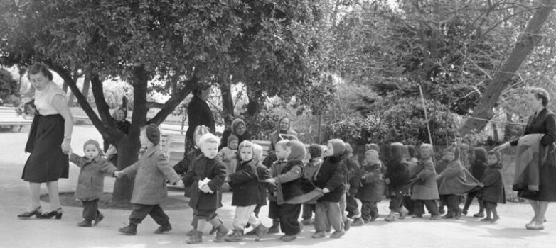 Воспитатели детского сада ведут своих юных подопечных по парку Ялты