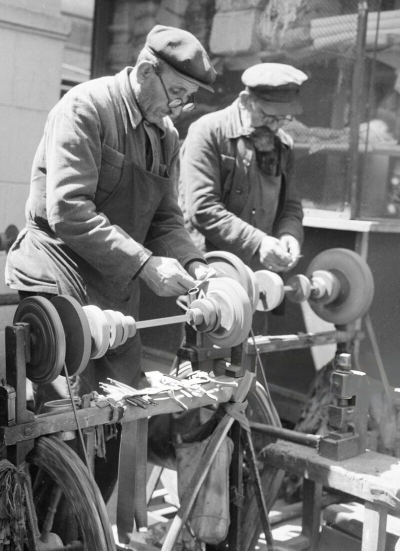 Уличные точильщики затачивают ножницы на улицах Киева