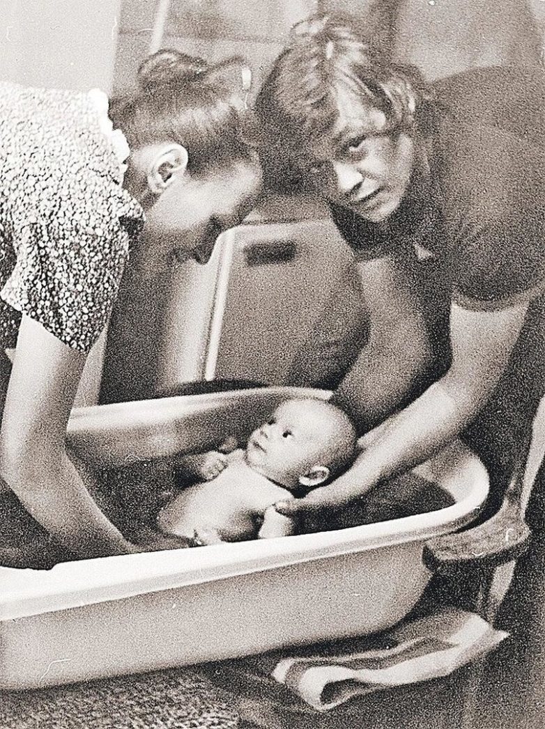 Николай Караченцов и Людмила Поргина заботливо купают своего 6-месячного сыночка Андрюшу. 1978 год.