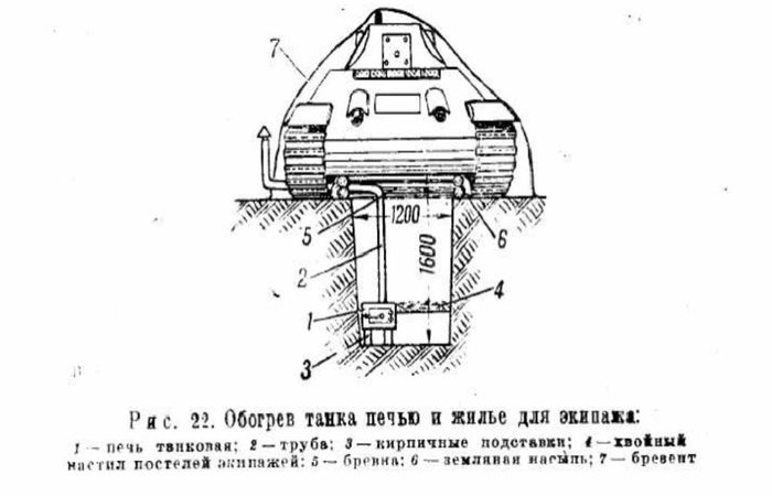 Схема с печкой окопе под танком, накрытым брезентом — рабочая. Читал про такое в воспоминаниях ветеранов-танкистов.
