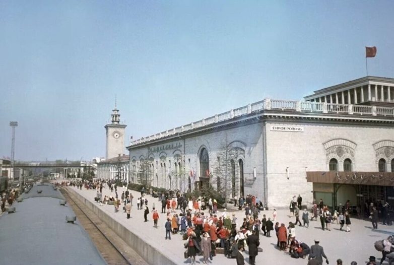 Вид на платформы железнодорожного вокзала города Симферополь.