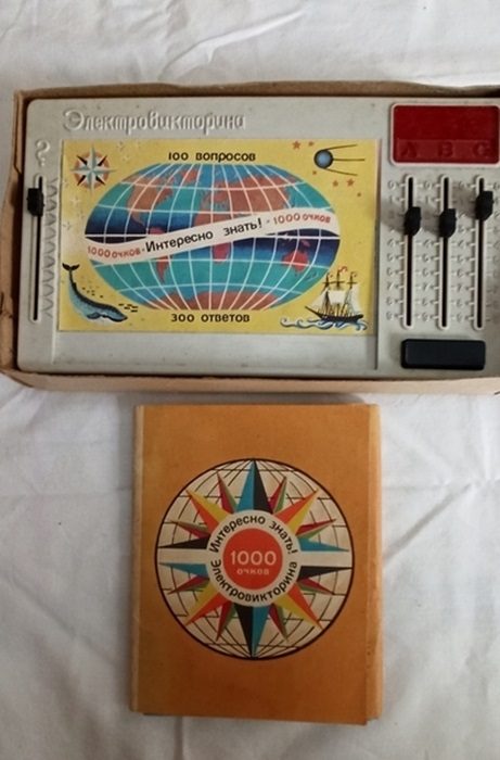 Целое семейство игрушек, которые выпускались ещё с середины прошлого века. Несмотря на различие в оформлении, принцип игры был одинаковый: игроку задавался вопрос, на который он должен был ответить с помощью нажатия стилусом в нужное отверстие, после чего гаджет реагировал на ответ вспышкой лампочки. Другим вариантом ответа на вопрос было передвижение рычажков вверх-вниз. К прибору прилагались карточки с различными вопросами, которые можно было сменить при желании, поэтому тематика электровикторины могла быть самой разной — от знания ПДД до точных наук.