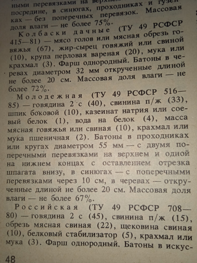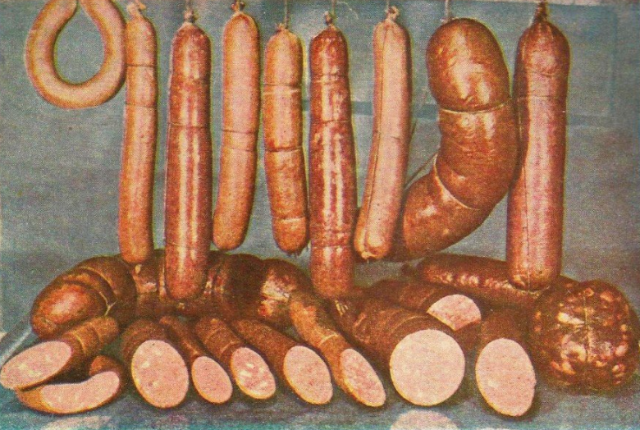 В 75 году поехал в командировку в Магадан и возвращаясь накупил 11 сортов разных колбас. Как раз к защите женой диплома. В Хабаровске в те году изредка бывали в соборной продаже колбаса Ветчинорубленная и просто Колбаса. А Магадан, Петропавловск-Камчатский были на так называемом «Ленинградском» снабжении и с продуктами там было значительно лучше. Но уже года через три, а я в те годы часто там бывал и помню что домой привозил, по доступности продуктов стало значительно хуже. «Ленинградское» снабжение сняли. В девяностые годы частных колбасных «фабрик» развелось немеряно. Я в Хабаровске смонтировал и наладил наверное с десяток, но особобым ассортиментом они не отличались — «Ветчина к завтраку» (самая вкусная на мой вкус), Краковская, Одесская, пару сортов вареной. А в 15 году переехал в Москву, колбас разных завались! Но я перешел на собственное изготовление колбаски для себя. Уж тут я точно знаю, что в неё положил! Ухогорлоносшкураписькахвост в дело у меня не идут.