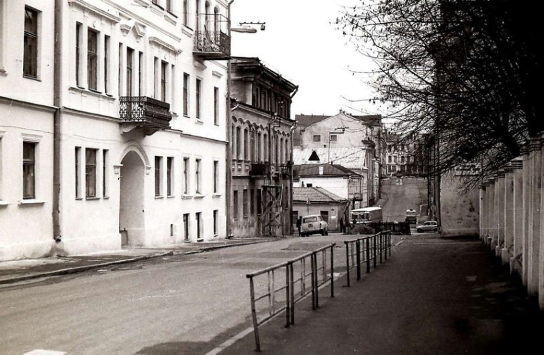 «Минск, БССР. Улица Революционная, конец 1970-х годов.» — Очень атмосферное фото, я бы сказал из серии «Одиночество», пустынная улица, холодный воздух осени, редкие звуки слышымые издалека…
