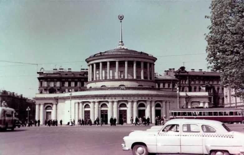 Ленинград. Площадь Восстания. Группа туристов у Московского вокзала.