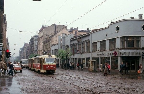 Рига, Латвийская ССР. Перекресток улиц Кр. Барона и Лачплеша, 1980-е годы