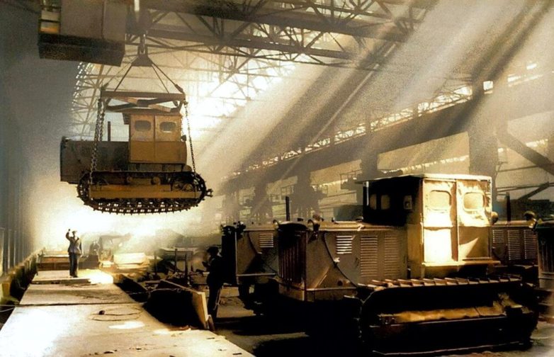 Кировский завод (ЧТЗ). Погрузка готовых тракторов «С-80» на железнодорожные платформы
