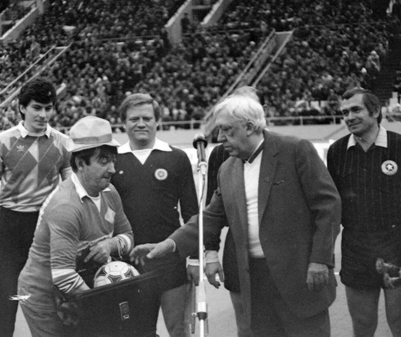 Георгий Вицин, Юрий Никулин, Ринат Дасаев на матче «Спартак-Динамо» в Москве, 1987 год