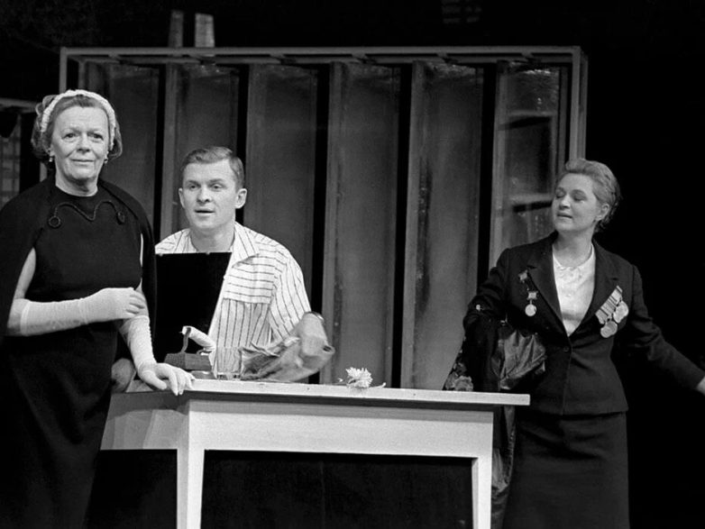 Евгений Евстигнеев, Олег Табаков и Людмила Гурченко в спектакле «В день свадьбы» в театре «Современник», 1963 год
