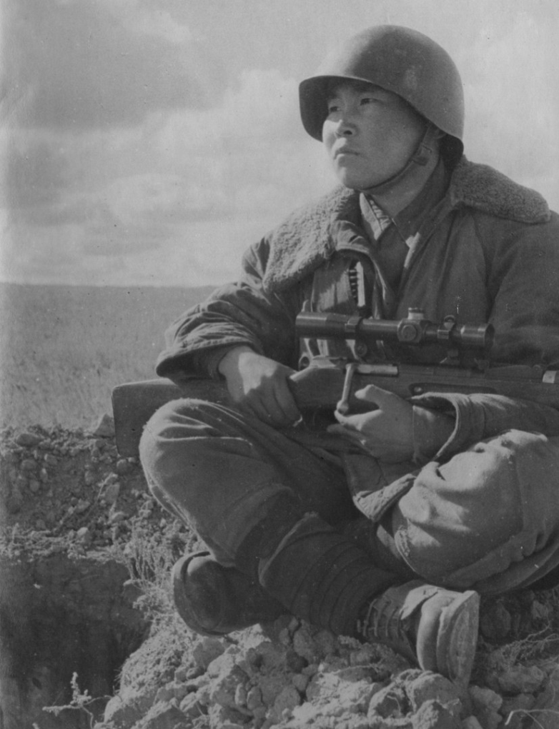 «22 сентября. Сегодня до рассвета вышел на огневую позицию. С вечера шёл дождь и в окопе сыро. Сижу, наблюдаю. За бугром, прижимаясь, бежит немец. Я приготовился. Фриц скрылся, снова появился. Ловлю его в перекрестие. Вижу — офицер. Спокойно целюсь. Есть! Хорошее начало».