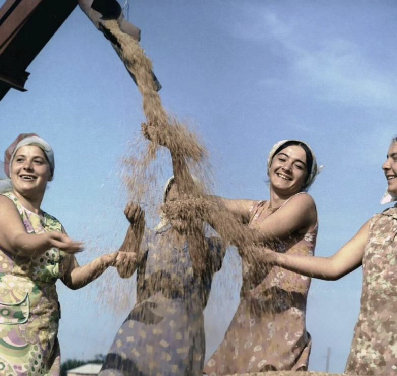 2. Работницы колхоза «Заря коммунизма», радуются новому урожаю пшеницы, 1972 год