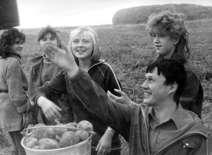 Какие все люди красивые и счастливые! Босоногий парень с девчонками на скамейке прикольно, а в детском саду в столовке как будто сам я за столиком сижу, ох ностальгия