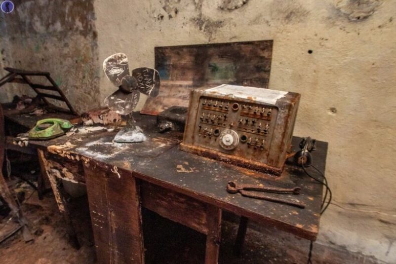 А на столе стоят остатки оборудования связи из другого блока.