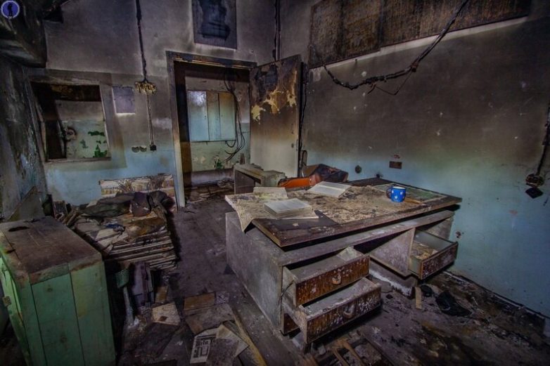 И ещё зал, который раньше был поделён лёгкими перегородками на несколько кабинетов, но перегородки давно сгнили и обрушились.