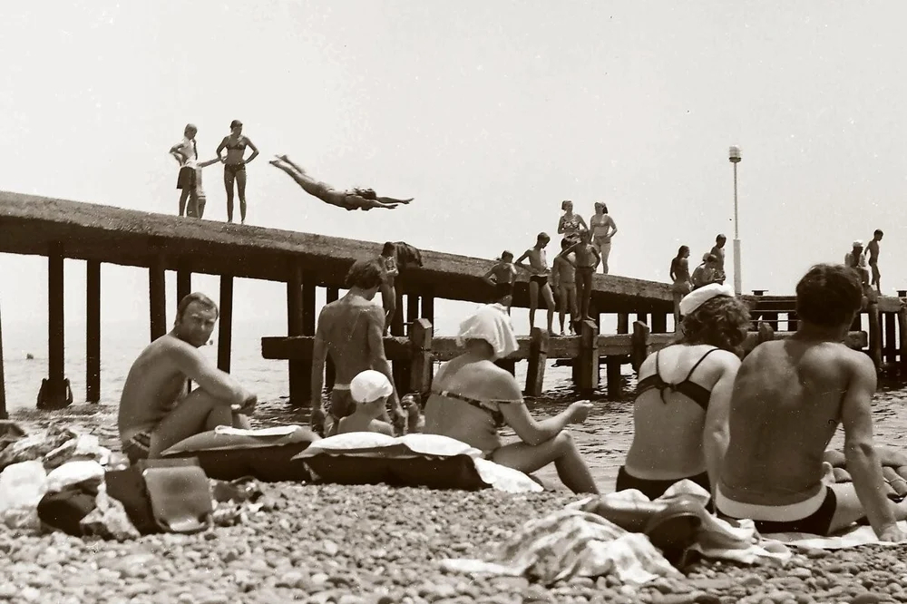 А таким в те годы был пляж в городе Евпатория.