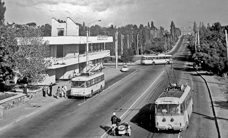 Ялтинское шоссе на выезде из Симферополя около конечной станции «Марьино». Полная гегемония троллейбусов «Шкода» на крымских дорогах.