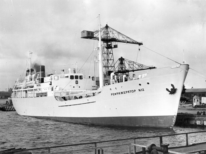 На встречу шел корабль-холодильник.