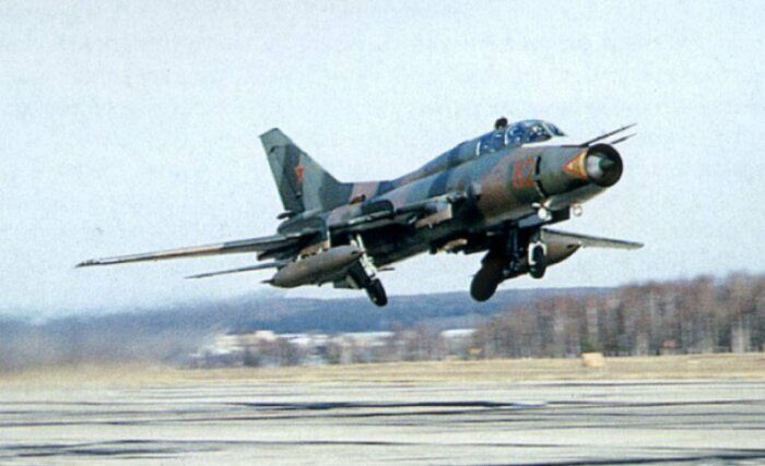 Так, именно в Су-7 впервые была реализована конструкция с подвижным конусом воздухозаборника. Вдобавок к этому машина получила передовые цельноповоротные стабилизаторы и, по сути, экспериментальный двигатель АЛ-7Ф. Все это наделило Су-7 первоклассными динамическими характеристиками, что в купе с относительно небольшой массой сделало машину едва ли не идеальной «птицей» ближнего маневренного боя. Еще в 1950-х годах «семёрка» смогла выжать из себя 2.03 Маха (2 170 км/ч). Однако, при всех этих достоинствах у творения КБ Сухого были и серьезные минусы…