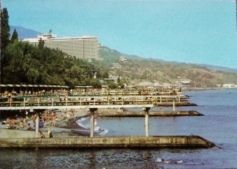 Вид на ялтинские пляжи и гостиницу «Ялта», которую сейчас мы знаем как «Ялта Интурист».