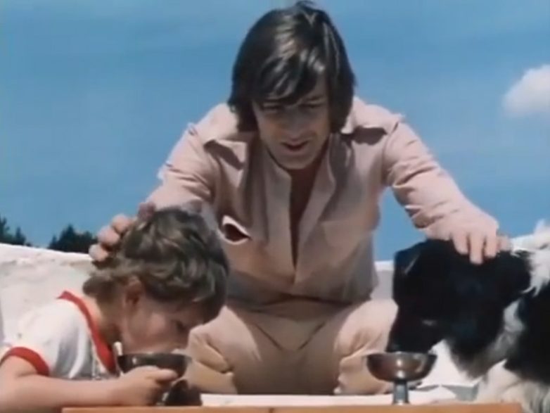 Что характерно, за несколько минут фильма мама ребенка появляется в нескольких платьях и блузках. А вот папа — ходит в одном и том же.
