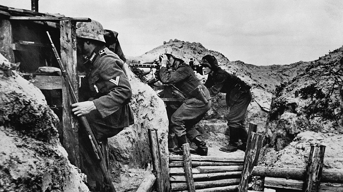 Альберт Лянг, немец, 1923 года рождения, на допросе показал, что на занятиях по химической подготовке, он изучал средства индивидуальной защиты и отравляющие вещества, такие, как: Бляукрайц – синий крест, Граукрайц – серый крест, Гильбкрайц – желтый крест, Зайскрайц – белый крест, и что эти отравляющие вещества в немецких частях, могущих их применять имеются и будут по приказу командования применены, как только русские прорвут оборону немцев
