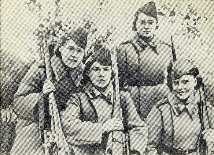 Сентябрь 1943 года. Девушки снайперы Ягодкина, Федорова, Гудованцева, Кузьмина