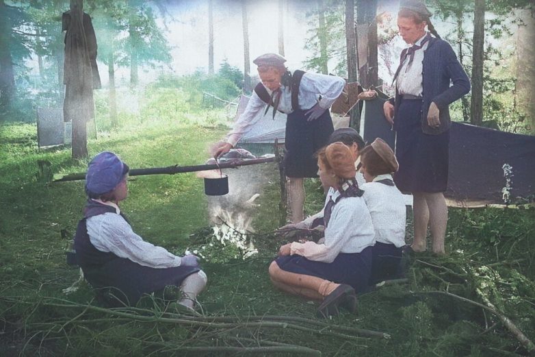 Не понятно только, откуда в СССР были скауты в синих галстуках.