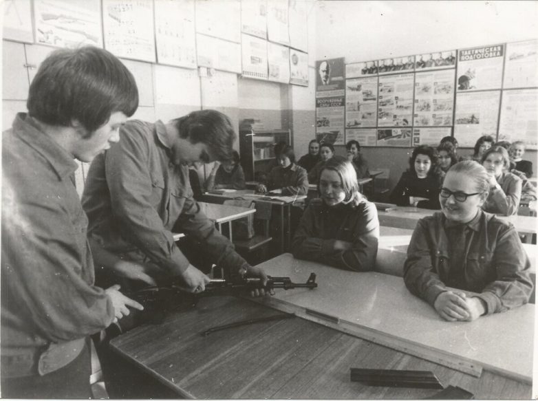 Вспоминается с благодарностью наш Военрук — подполковник танковых войск в отставке, участник Войны Валеев Галей Мубаракшевич. Он нас не только учил, но и по отечески воспитывал — чтобы мы были в первую очередь ЛЮДЬМИ. С возрастом многое из сказанного им тогда понимаешь лучше… Он ещё и в тех самых Тоцких учениях принимал участие — видел реальный взрыв «Татьяны» и его последствия. Как-то привёл на урок своего друга. Тот тоже пожилой, в форме. И принёс полный портфель разных мин — показывал на как их устанавливать, рассказывал об их особенностях. Стрелять из ТОЗ он нас водил в тир на заводе ЖБИ, а в школе мы только из воздушек стреляли и изучали правильное прицеливание. После 9-го класса у нас были сборы — учились по карте ходить, окапываться и т.д., а в один день поехали на полигон и стреляли из Калаша — 3 патрона одиночно, остальные очередью(всего 9). Потом кто хотел — ещё раз дали пострелять, а по-моему хотели все! Ещё он с нами по осени на картошку ездил. Кстати: у нас и девочки занимались на НВП, автомат так азартно собирали-разбирали бывало… Только перед уроком Галей Мубаракшевич нас строил в коридоре и проверял внешний вид, делал замечания. Девчонок у кого увидит — отправлял в туалет лак с ногтей смывать и стыдил за слишком короткие платья. И готовил нас на общегородскую «зарницу» и конкурсы песни и строя. Ещё у нас трудовик-столяр Дмитрий Никифорович тоже был ветеран войны, артиллерист. Бывало его не слушались и шумели на уроке — всё изменилось, когда 9 мая он пришёл в форме и при орденах… Оказалось у него с войны осколок в шее — осенью в распутицу они вручную катили пушку и она колесом наехала на неразорвавшийся снаряд. Все сразу стали вытягивать шеи — посмотреть где осколок… Дмитрий Никифорович даже рассмеялся — ну что вы, не видно его… После этого мы его очень зауважали! А в 116-й школе Военрук был ветеран войны, Герой Советского Союза Умеркин. Он в войну оставшись один у орудия отражал атаку Немецких танков. Так вот — он добился, что в подвале школы соорудили тир — из ТОЗ (мелкашек) стрелять. И там парни даже в перемену ходили стреляли, могли всегда когда захотят. Сейчас там в школьном дворе его бронзовый бюст установлен. Сейчас если вернут НВП в школе — наверное бывшие участники СВО его будут вести.