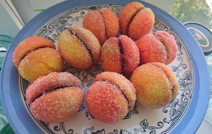 Чтобы придать пирожному сходство с настоящим фруктом, хозяйки не использовали никакие пищевые красители – добиться нужного оттенка помогали морковный и свекольный сок. А в качестве начинки использовались абрикосовое варенье, перемешанное с вышеупомянутой вареной сгущенкой.