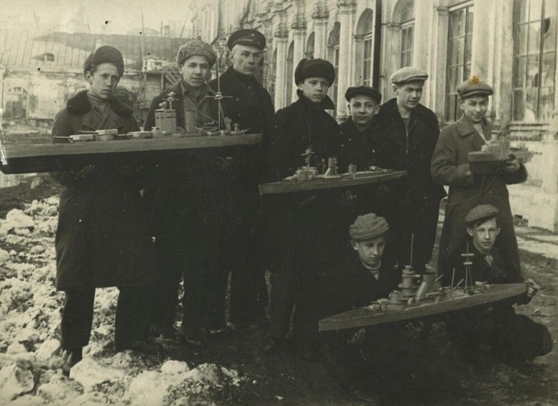 11. Группа учеников из судомодельного кружка во дворе Лавры около Митрополичьего корпуса.
