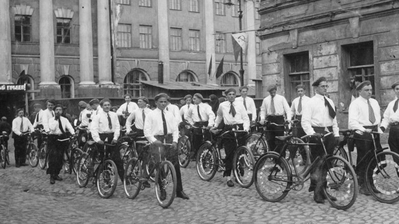 16. Коллектив велосипедистов-физкультурников на углу Лоцманской и Псковской улиц.