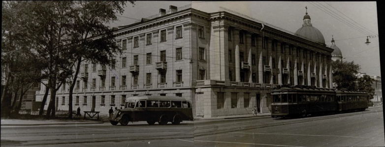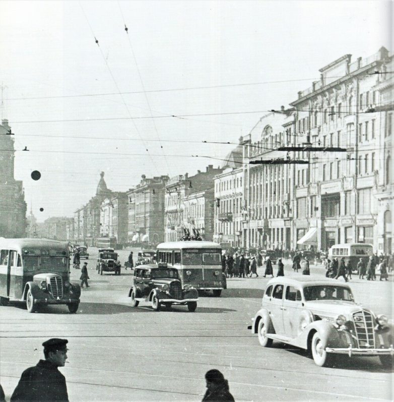 Заодно можно разглядеть два главных представителя общественного транспорта Ленинграда того времени.