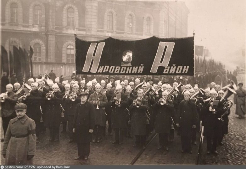 10. На проспекте Газа (ныне — Старо-Петергофский проспект) идёт какое-то шествие. Скорее всего, отмечают Первомай.