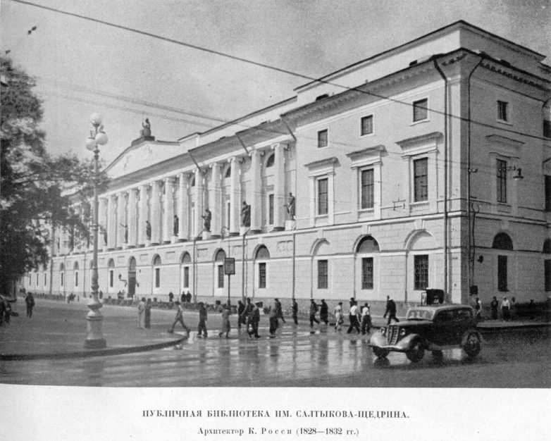 (ныне — Российская национальная библиотека) на углу проспекта 25 Октября (ныне — Невский проспект) и площади Островского.