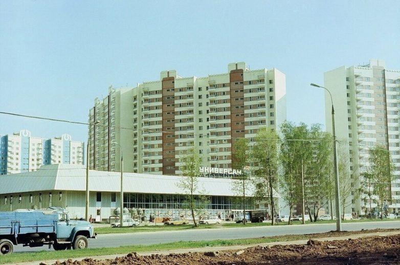 Обратите внимание, что ещё даже девяностые не наступили, а в Москве уже и на дорогах плотно, и с парковкой местами всё не просто. Ещё сильнее удивляет отсутствие разметки по полосам движения, на такой широченной магистрали.