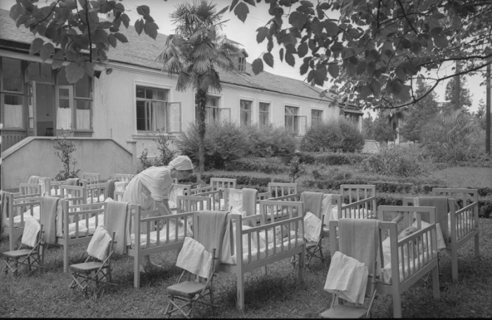 В советских дошкольных учреждениях к персоналу, особенно работающему с детьми ясельного возраста, предъявлялись строгие требования. Особое внимание уделялось гигиеническим нормам, правилам кормления и уходу за каждым ребенком. Очень важным элементом распорядка дня был дневной сон, который часто организовывался на свежем воздухе.Потому в садиках были большие веранды, где во время детского сна распахивали окна. Детишек клали в теплые спальные мешки, оставляя открытыми лишь лица, и переносили на веранду, на кроватки. После полуторачасового сна на воздухе малышей поочередно возвращали в теплое помещение, где быстро переодевали и предлагали вкусный полдник.