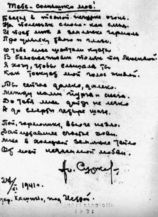 Алексей не мог справиться с собой и записал всё, что подсказывало ему вдохновение. Потом все свои записки он отправил своей жене по почте. Примерно год спустя композитор Константин Листов обратился к Суркову, у него была музыка и срочно нужны были стихи. Корреспондент вспомнил о строках, которые родились у него после выхода из окружения с боем и предложил их. Именно так появилась на свет легендарная песня военных лет «Землянка».