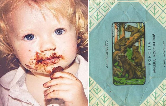 Шоколадные конфеты стали ярким впечатлением у детей СССР. «Мишка косолапый» был самым популярным. На обертке конфет была изображена картинка «Утро в сосновом бору» Ивана Шишкина и Константина Савицкого. Их выпускала фабрика «Красный Октябрь» (бывшая «Эйнем»). В состав шоколадных конфет входил миндаль, но со временем лакомство стало настолько популярным, что миндаль пришлось заменить арахисом. Разница во вкусе для советских граждан оказалась заметной. В результате эксперимента появились конфеты «Красная шапочка» с арахисом. Кондитерская фабрика «Красный октябрь» продолжает выпускать конфеты по сей день. Правда, если верить отзывам покупателей маркетплейсов, вкус у них изменился — у начинки отсутствует тающий эффект во рту.