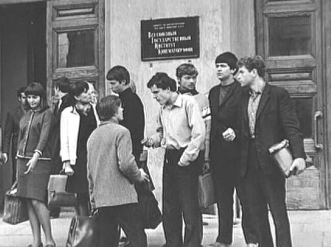 Вадим Спиридонов (крайний справа) с однокурсниками около здания ВГИКа.