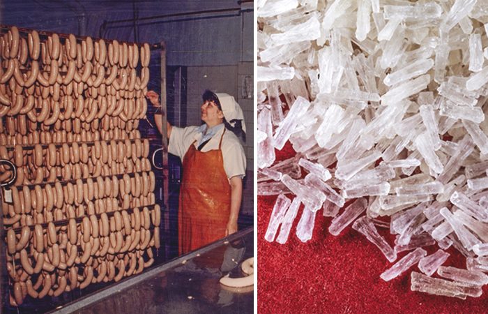 Действительно, в колбасные изделия уже с конца 60-х стали добавлять различные вкусовые добавки (усилители вкуса) и консерванты. Я помню что тогда «Докторская», полежав 2-3 дня, «зеленела» на срезе.