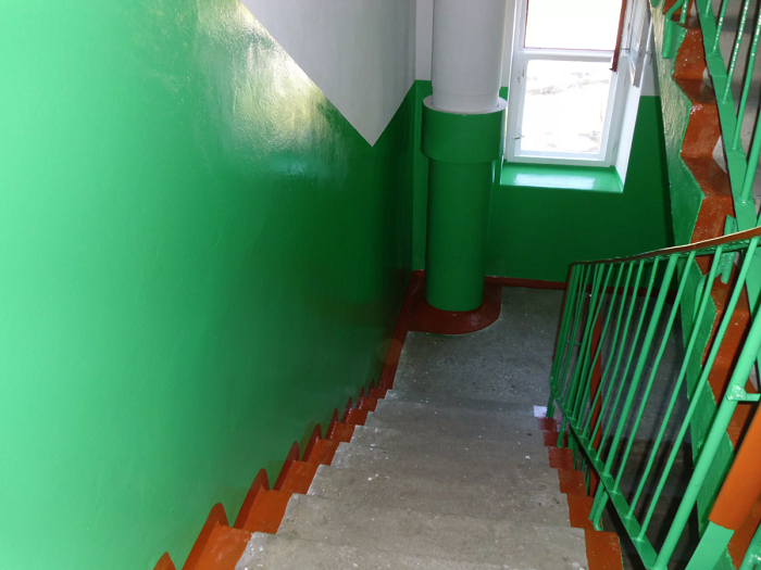 1. Синий и зеленый цвета в подъезде