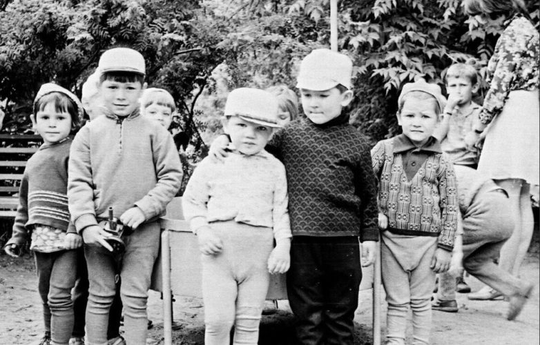 Ну и одежда на детях на последнем снимке. Хоть бы шортики поверх колготок одели (как в любом дет саду того времени). А пацан (второй слева) по ходу обоссался?