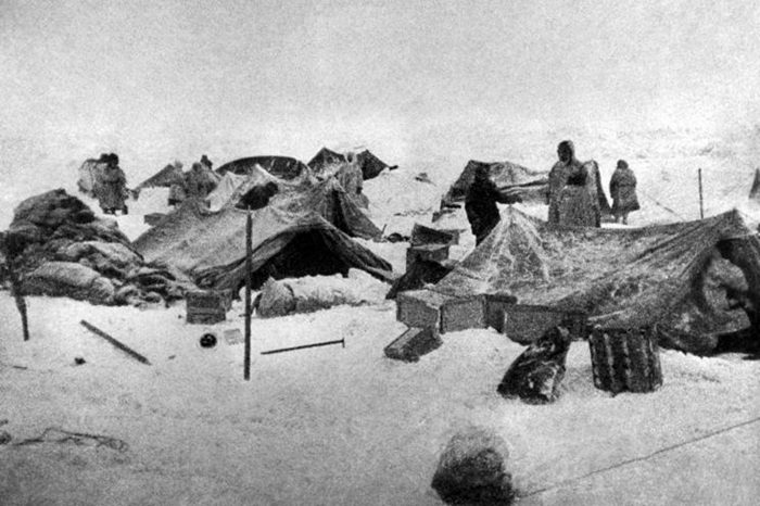 Людям пришлось разбить лагерь на льду, чтобы не оказаться раздавленным льдами вместе с кораблём.